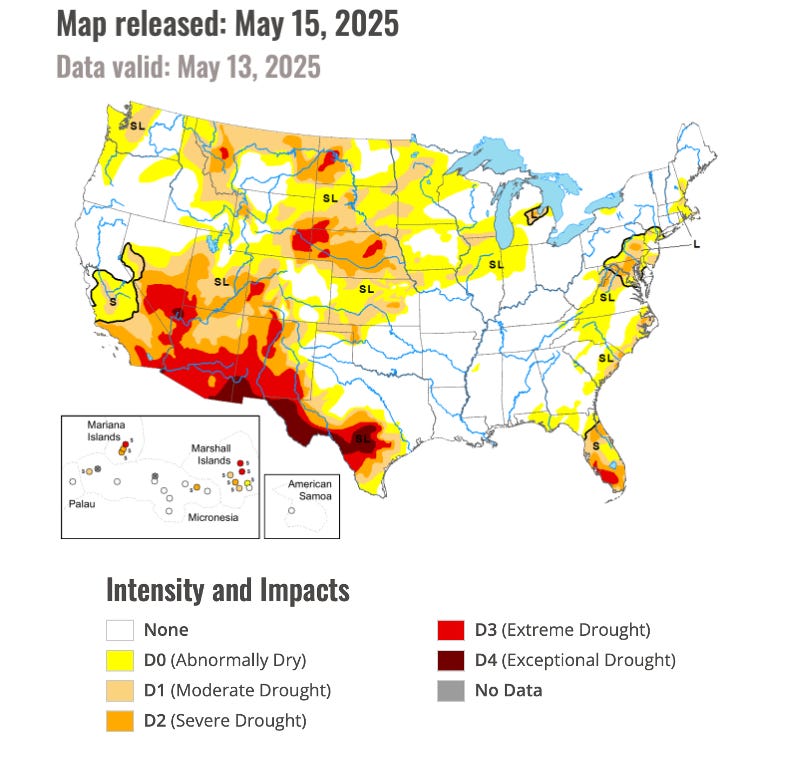 Now, you might think it's intuitive to grow crops whose moisture requirements align with expected rainfall. You might even be tempted to say that a farmer that does such a thing might be thinking ‘environmentally’. But this isn’t how agriculture thinks. This is an industry where you can plow up a 6% slope for corn and still call yourself an environmentalist if you turn off the anhydrous ammonia when you round a corner.