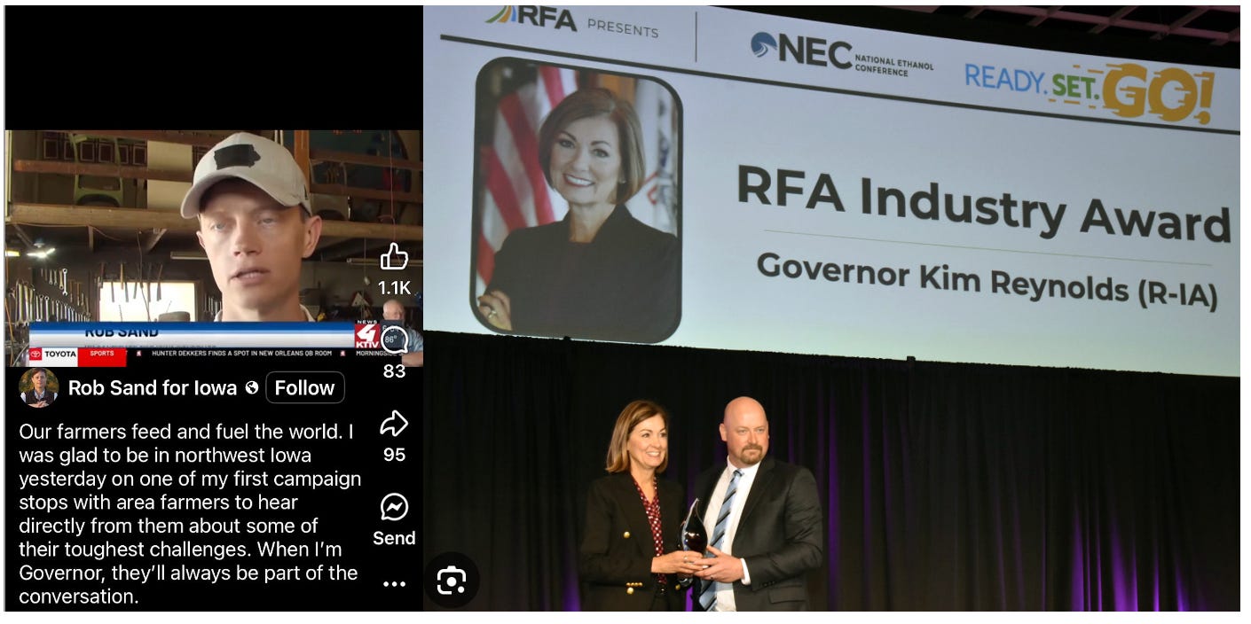 Kansas Department of Environmentaling (oops, I mean Agriculture) engineer Earl Lewis says the state’s consumption of groundwater from the giant aquifer continues to outstrip natural replenishment (1). You might be tempted to say that if we are going to use a water resource that takes 6000 years to replenish (2), we might do it judiciously and for good reason. Something other than producing beef protein for the world’s wealthy and, of course, FUEL ETHANOL. Yasssss, we’re using fossil fuel to pump 6000-year-old-groundwater to the surface to produce corn ethanol. About 33% of the corn in Kansas and 40% in Nebraska (compared to ~55% in Iowa) goes to produce ethanol. Kansas has 10 ethanol plants and Nebraska 24, and many of these are in the western portion of those states. How does this make sense? Well, the Renewable Fuel Standard makes this perversity possible by guaranteeing a market for corn, even when it’s grown in borderline desert conditions.