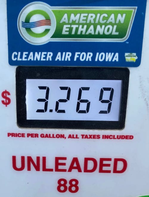 Let’s consider that jobs number, 6911, for a moment. The Iowa Corn Growers Association says 62% of Iowa corn goes to ethanol. USDA says 13.5 million acres of Iowa land was planted for corn in 2025, so 62% of that is 8.37 million acres, or 13,078 square miles. (I’ve been saying 11,000 in my speaking programs, I guess I needed updating.) 6911 jobs divided by 13,078 square miles amounts to 0.53 jobs per square mile of the best farmland on earth. If that doesn’t sound like much to you, well, it isn’t.